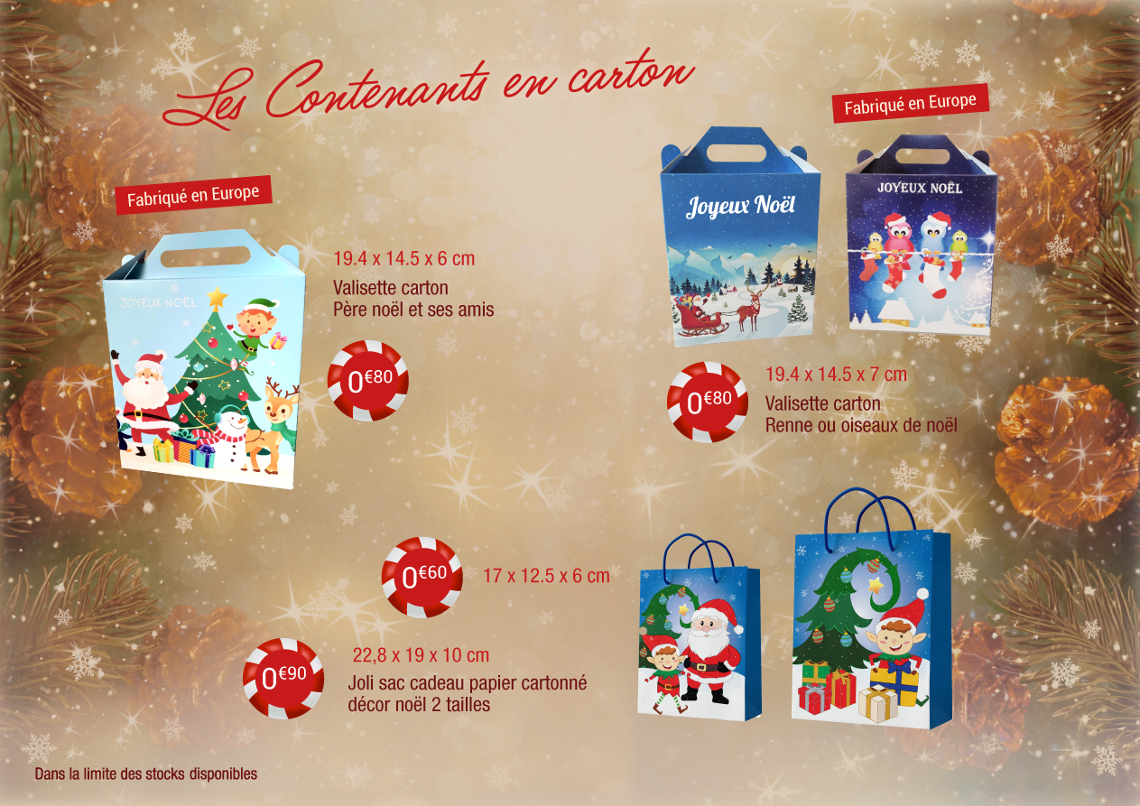Notre catalogue propose une large collection de contenants spécifiques sur le thème de noël ou neutres pour mettre en valeur les confiseries.