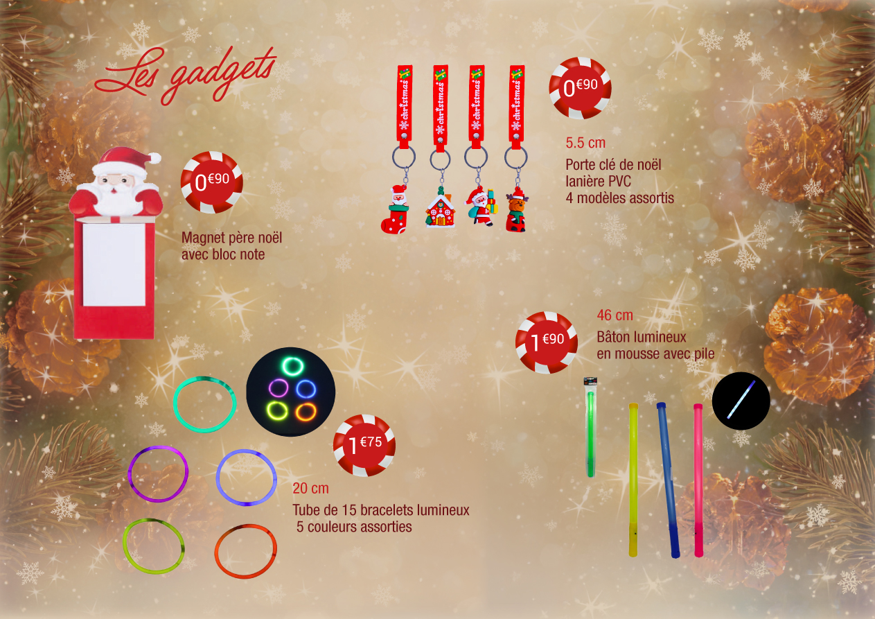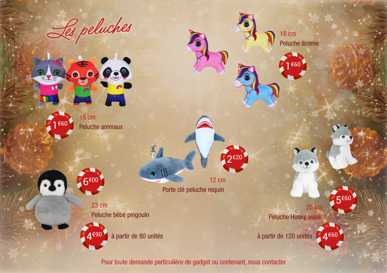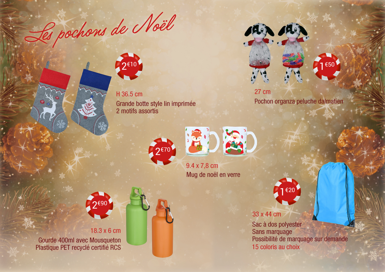 Vous pouvez également ajouter de petits cadeaux utiles ou ludiques tels que mugs, peluches ou jeux pour le plus grand plaisir des enfants