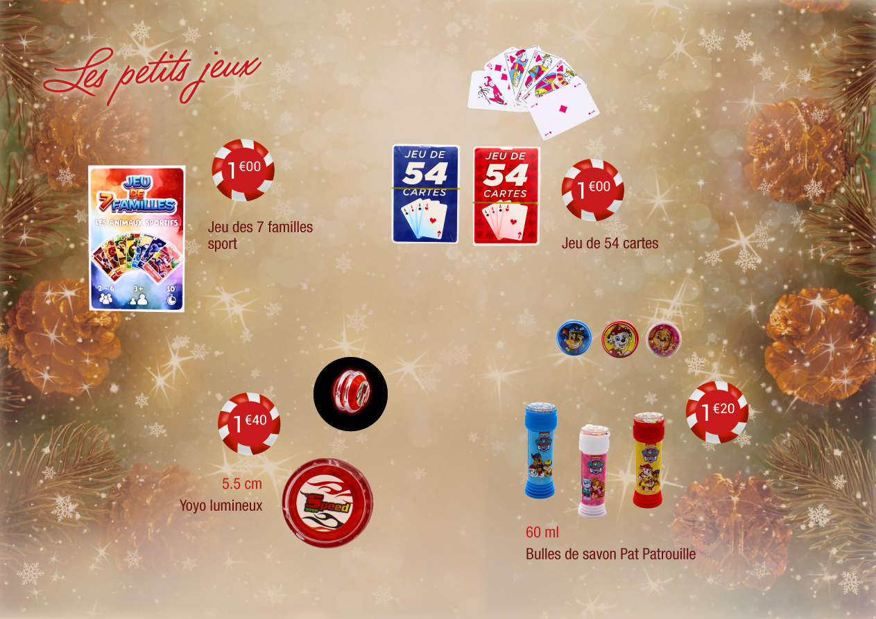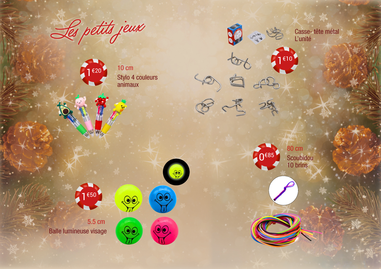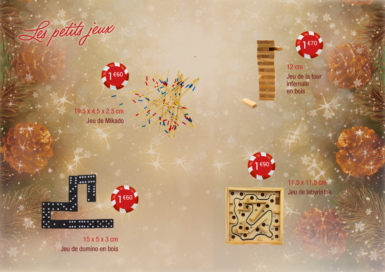 Vous pouvez également ajouter de petits cadeaux utiles ou ludiques tels que mugs, peluches ou jeux pour le plus grand plaisir des enfants